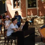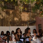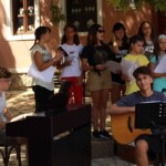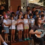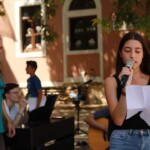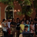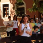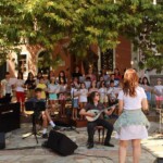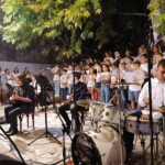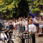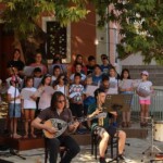 Στον ατμοσφαιρικό αύλειο χώρο του Αγίου Βλασίου απολαύσαμε ένα μουσικό ταξίδι- αφιέρωμα στον Μίκη Θεοδωράκη από τις εξαίσιες φωνές και μελωδίες της παιδικής χορωδίας και της εφηβικής ορχήστρας του ΛΕΞ, συνοδευόμενες από τον κ.Π. Κράια στο τραγούδι, τον κ. Β. Τσιαπλέ στο μπουζούκι, υπό την καλλιτεχνική επιμέλεια της κας. Εύας Ξανθοπουλίδου.