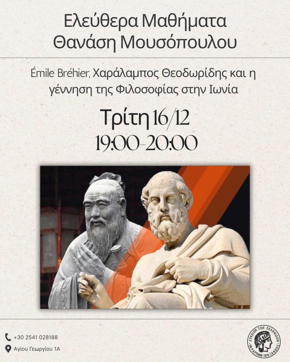 «Émile Bréhier, Χαράλαμπος Θεοδωρίδης και η γέννηση της Φιλοσοφίας στην Ιωνία»