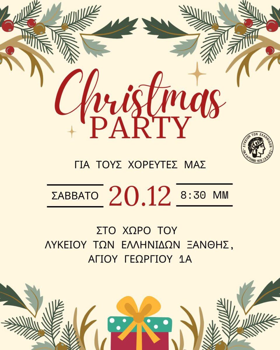 Το Λύκειον των Ελληνίδων Ξάνθης προσκαλεί όλους τους χορευτές του σε μια ζεστή, γιορτινή βραδιά γεμάτη μουσική, χαμόγελα και χριστουγεννιάτικη διάθεση!