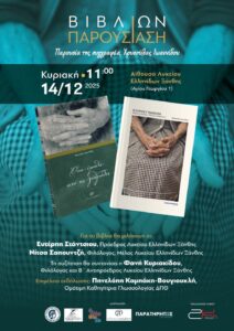 Το Λύκειον των Ελληνίδων Ξάνθης σας προσκαλεί την Κυριακή, 14 Δεκεμβρίου 2025, ώρα 11:00 π.μ, στον χώρο του (Αγίου Γεωργίου 1), σε μια μικρή θρακιώτικη χριστουγεννιάτικη γιορτή, όπου θα γνωρίσουμε τη Χρυσούλα Ιωαννίδου — παρουσία της συγγραφέως. Μια νεότερη Θράσσα συγγράφισσα, μια ακρίτισσα που συλλέγει σταγόνα σταγόνα ό,τι έχει απομείνει από την τεράστια λαογραφική και …