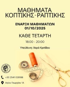 Το Λύκειον των Ελληνίδων Ξάνθης ξεκινώντας δυναμικά τη διδακτική χρονιά 2025-2026 σας ανακοινώνει τα τμήματά του και σας προτείνει να τα παρακολουθήσετε: 1) Παραδοσιακών χορών για παιδιά, εφήβους, φοιτητές και ενήλικες, αρχαρίων και προχωρημένων, διάρκειας δύο διδακτικών ωρών εβδομαδιαία. Θα λειτουργήσουν και τμήματα ενηλίκων πρωινές ώρες. 2) Παραδοσιακού – Πολυφωνικού τραγουδιού ενηλίκων. 3) Κοπτικής-Ραπτικής. 4) …